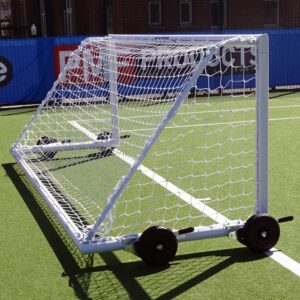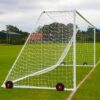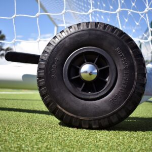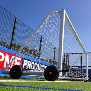 These aluminium goals are easy to maneuver when used with EasyLever wheels. The wheels can be adjusted up/down using a simple lever system that produces ample ground clearance and the tyres are puncture-proof.  Included within this package deal is a 3.5mm white net that is weatherproof and shaped to fit this goal so you get a professional-looking goalpost that will last match after match.