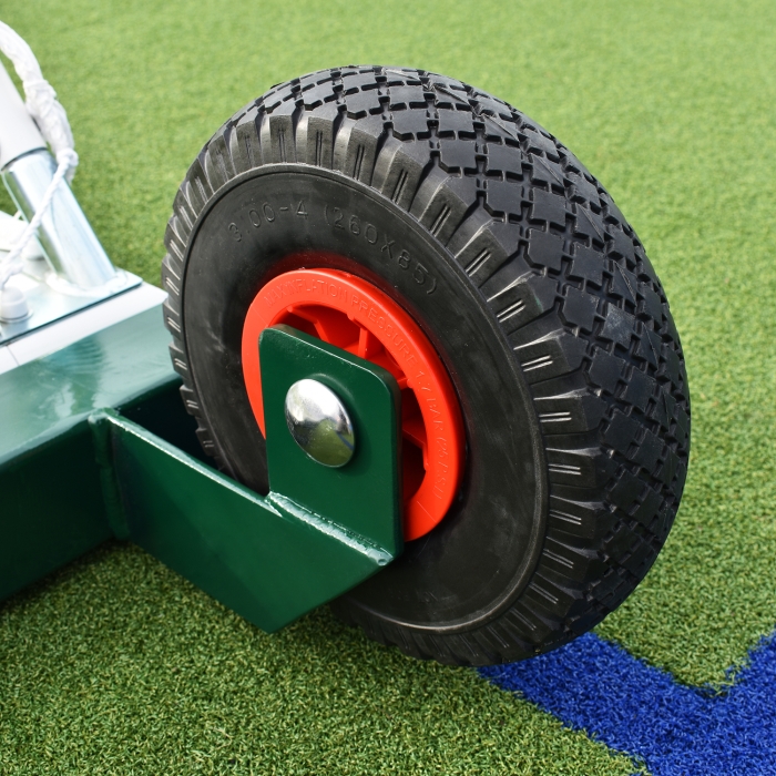 The 5-a-side Academy Self-Weighted Rollaway Goal is a professional aluminium goal designed to optimise manoeuvrability. The goal features a handle to each side for ease of lifting and can be easily moved by two adults. Simply lift the front of the goal off the ground, using the handles, and roll away. The weighted backbar is powder coated green for durability and features two puncture-proof wheels.