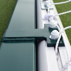 The aluminium construction makes this goalpost low maintenance and entirely weatherproof. Precision cut corners are reinforced by steel elbow joints providing strength when the goal is fully assembled. All fixings are treated to prevent against rust.