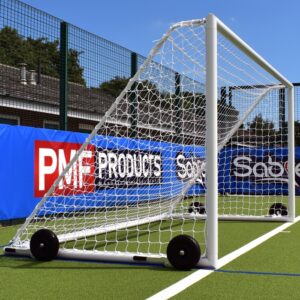 These aluminium goals are easy to maneuver when used with EasyLever wheels. The wheels can be adjusted up/down using a simple lever system that produces ample ground clearance and the tyres are puncture-proof. Included within this package deal is a 3.5mm white net that is weatherproof and shaped to fit this goal so you get a professional-looking goalpost that will last match after match.