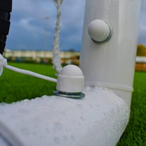 The Champion Portable Goal is designed to be strong and durable while remaining portable. The goal is manufactured from a heavyweight 60mm round steel that is 4mm thick providing unrivaled strength. Corners are fully welded giving this goal an exceptionally strong frame that is built to last! All bolts and fixings are stainless steel while the entire frame is hot-dip galvanised before being polyester powder coated white to prevent against rust.