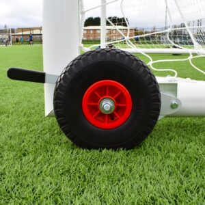 This great value steel portable goal is ideal for clubs, schools and colleges looking for a durable, low maintenance goal that will stand up to frequent use. EasyLever wheels (included) are easily fitted and are very simple to operate with no need to physically lift the goal. The package deal includes a 3.5mm white net, that is UV stabilized and very durable.
