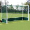 Designed to be the regulation size of 12ft x 7ft, the Sabre Academy Freestanding Regulation Hockey Goal is made from 50mm x 70mm extruded aluminium profile and back supports have been made from 38mm aluminium. The goal has a top bracing bar for added strength and has full stainless steel net lacing rods all around. Goals and supports are polyester powder coated white. Backboards are made from a 457mm (18 inch) high, recycled 25mm thick solid polyethylene with aluminium frame and are supplied with 2 solid foam filled non puncture wheels.