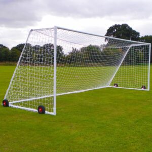 This great value steel portable goal is ideal for clubs, schools and colleges looking for a durable, low maintenance goal that will stand up to frequent use. EasyLever wheels (included) are easily fitted and are very simple to operate with no need to physically lift the goal. The package deal includes a 3.5mm white net, that is UV stabilized and very durable.