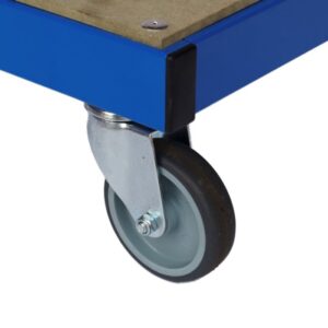 The trolley is manufactured from 50mm x 50mm box section and powder coated for a strong durable finish. The maximum load capacity is 250kg.