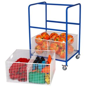The Universal Storage Trolley is designed to be narrower but higher than other sports trolleys. This makes it better suited to customers who are restricted by space. The trolley is versatile and allows the storage of various types of football equipment. Just like the Multi-Purpose Storage Trolley, this trolley is supplied with 2 plastic coated baskets that include removable partitions. This means you can adjust the size of each basket to suit the type of products you need to store.